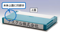 横書きで凸が上、縦書きで凸が右側に出ます。 印面の高さを2.5㎜で作製しています。 印面の高さを±0.1㎜毎に(最大±0.5㎜)調整できるので、合わせやすいタイプです。 |