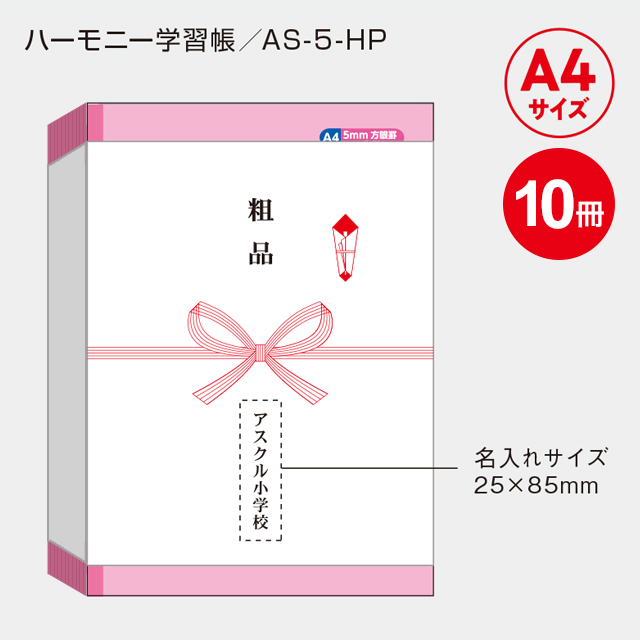 【10冊セット】ハーモニー SECTION 5mm方眼ノート A4サイズ(ピンク) AS-5-HP ×5セット(50冊)